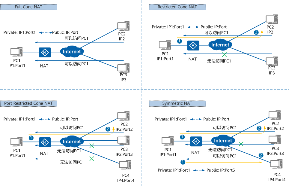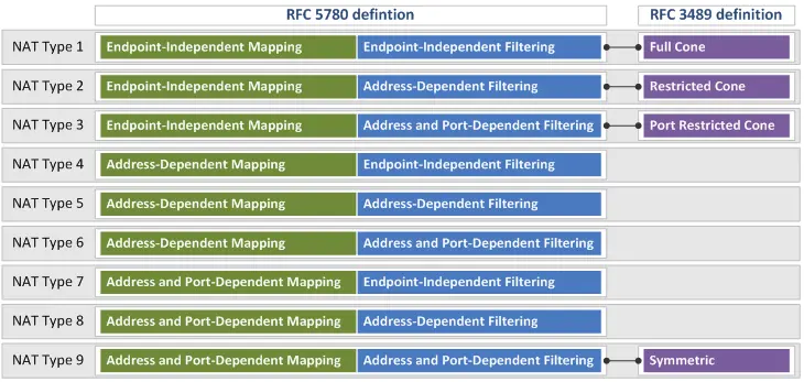 各种 NAT 类型的解释 (RFC 3489,RFC 4787)