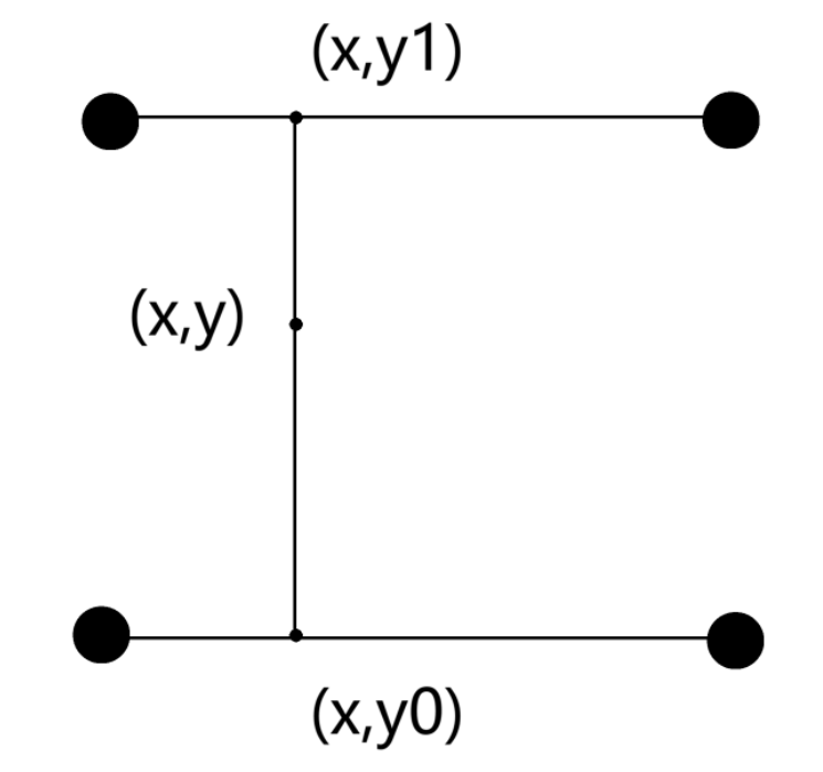 因此,要求出$(x ,y_{0})$ 和 $(x, y_{1})$ 两个点的插值 $ix_0$ 和 $ix_1$,我们要使用以下公式: